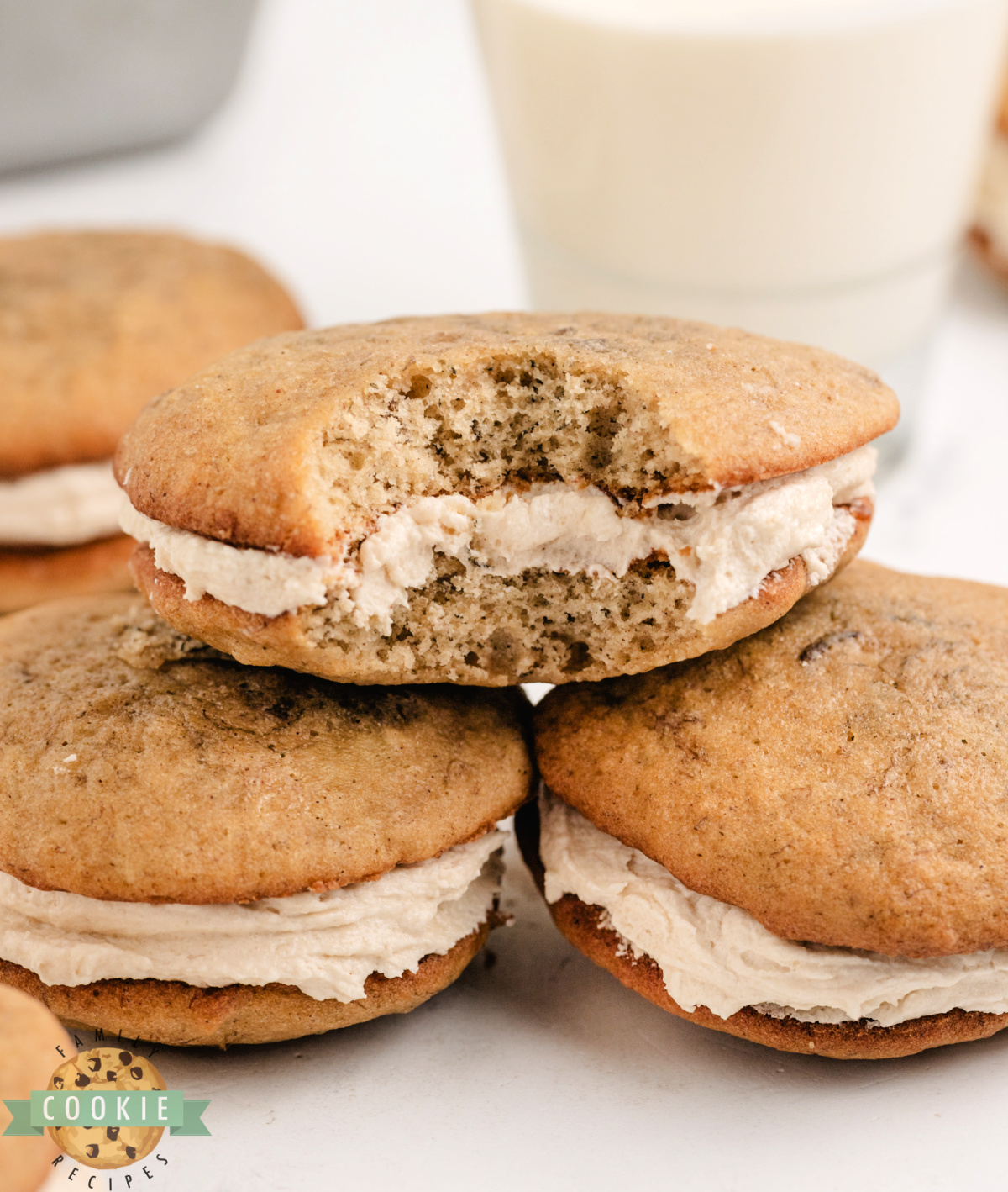 - Brown sugar frosting: The filling is rich, buttery, and sweet with a deep caramel note that pairs perfectly with the banana cookies.