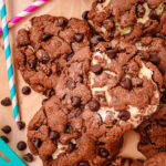 Cream Cheese and Chocolate Cookies made with a buttery dough & 2 types of chocolate then stuffed with a sweetened cream cheese filling for a dozen decadent, bakery style cookies!